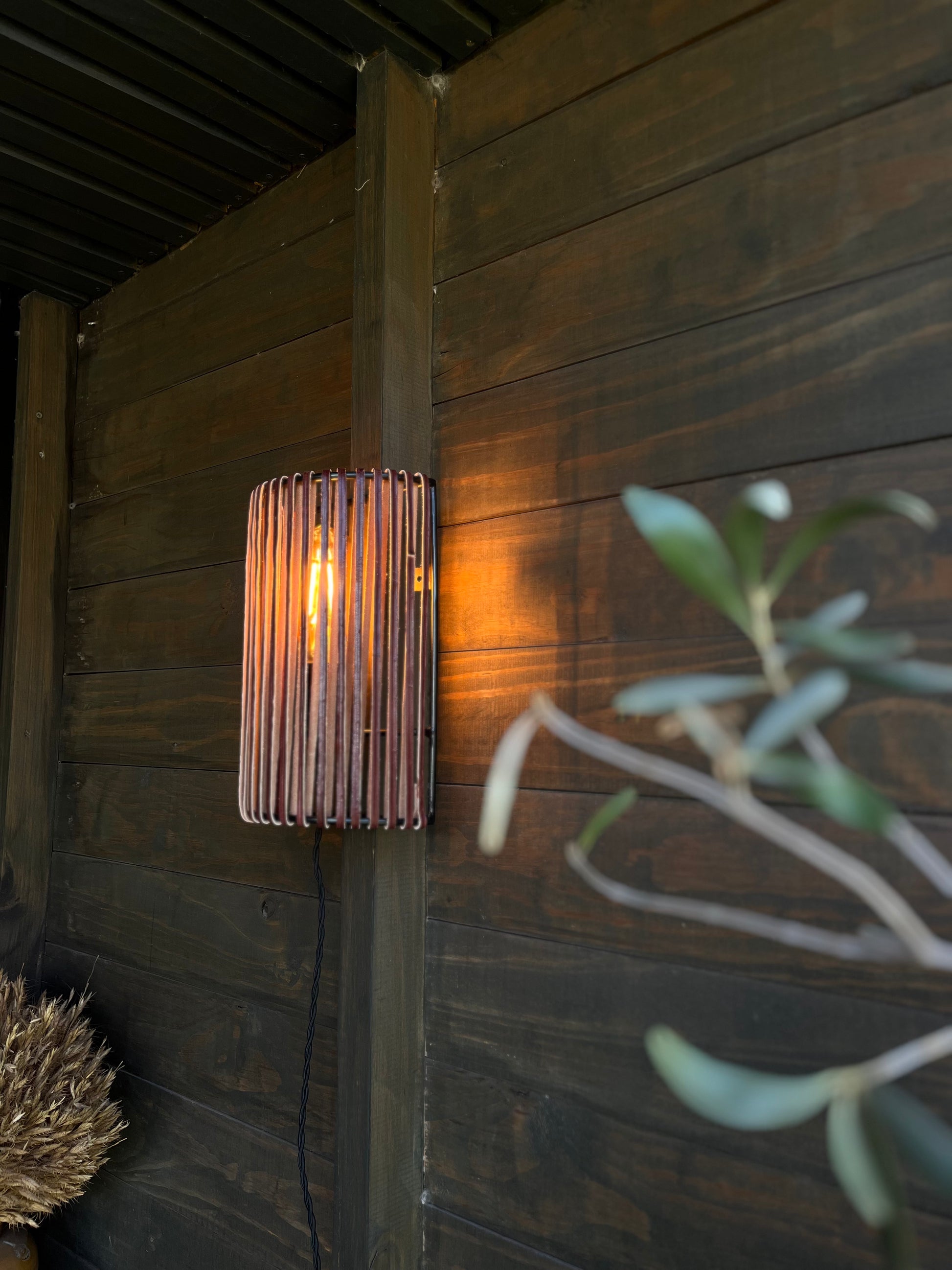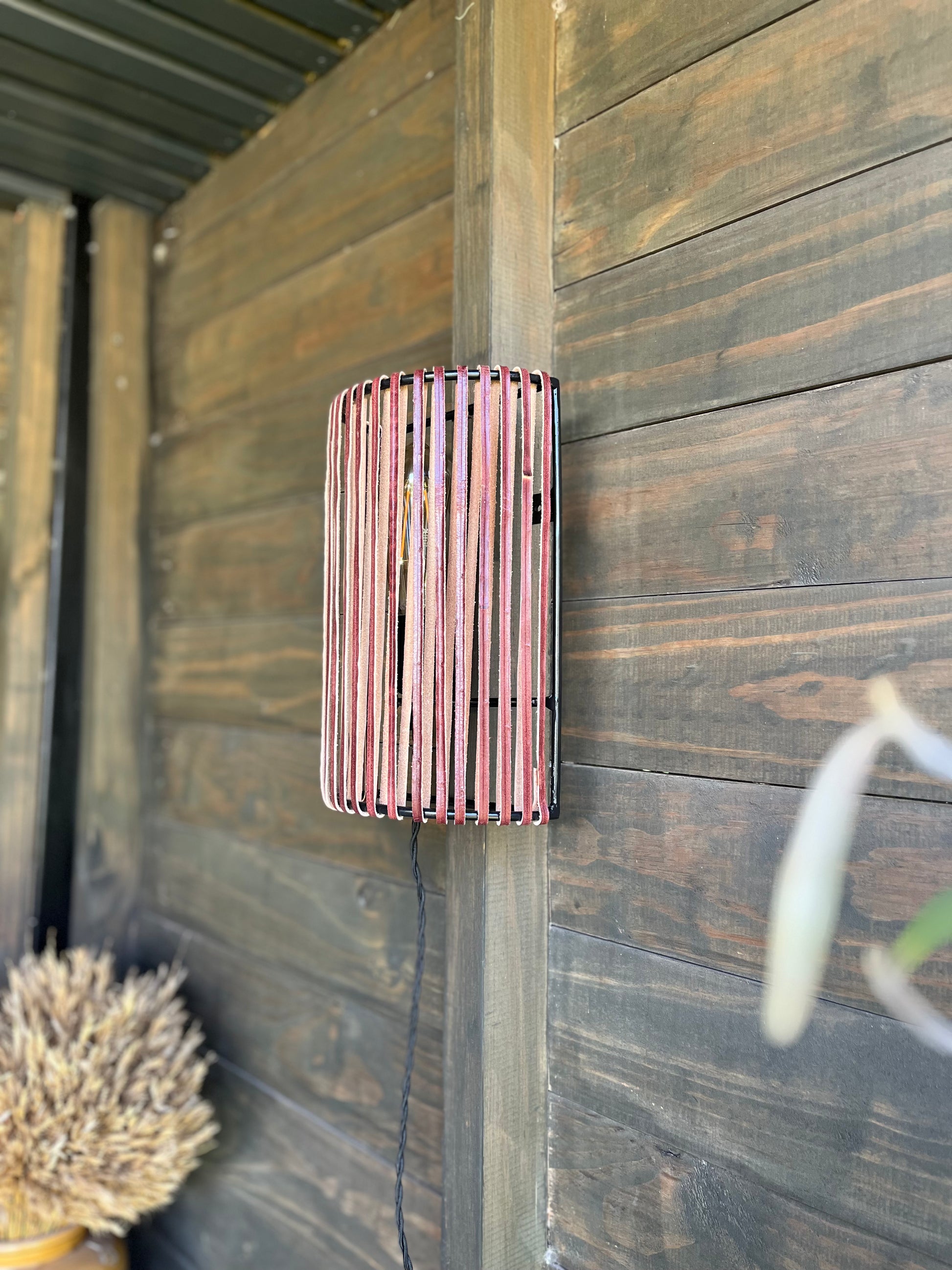 Lámpara Aplique Gadir Cuero Burdeo