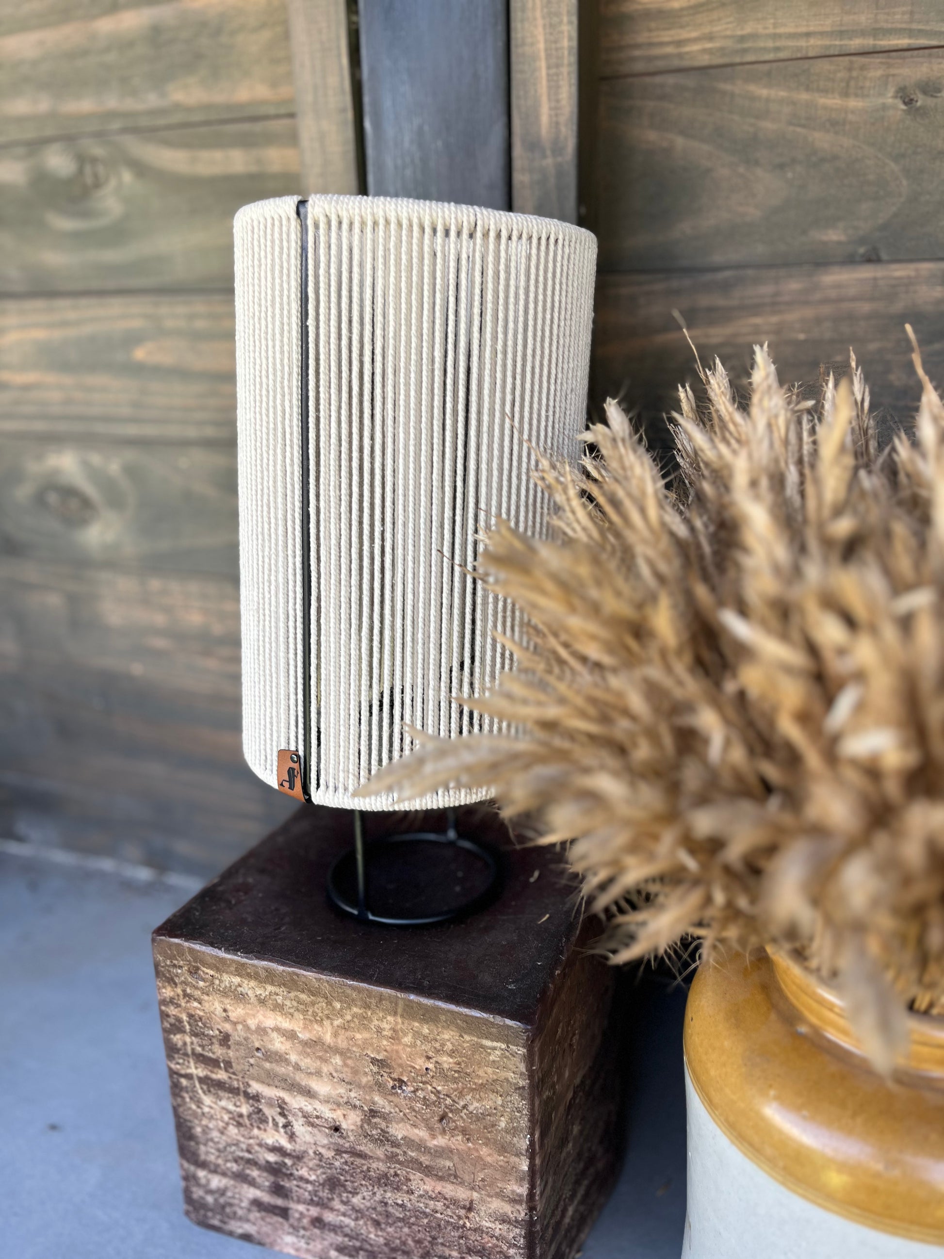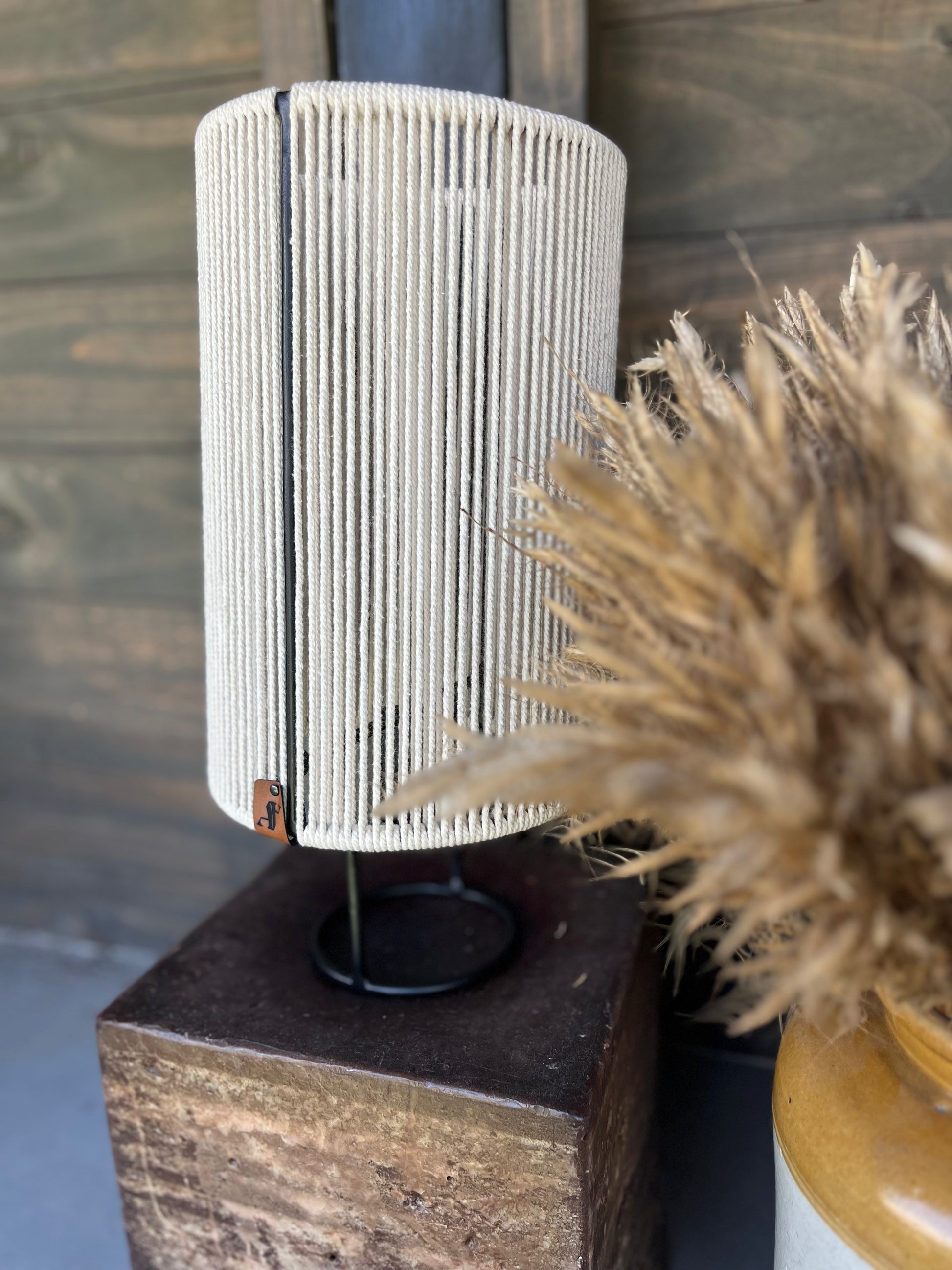 Estoy hecha a base de fierro pintado con pintura negra electroestática para un mejor acabado y durabilidad, y tejida a mano con la técnica base del telar por mis diseñadoras. con una fibra natural llamada algodón. Dandole modernidad y atemporalidad.