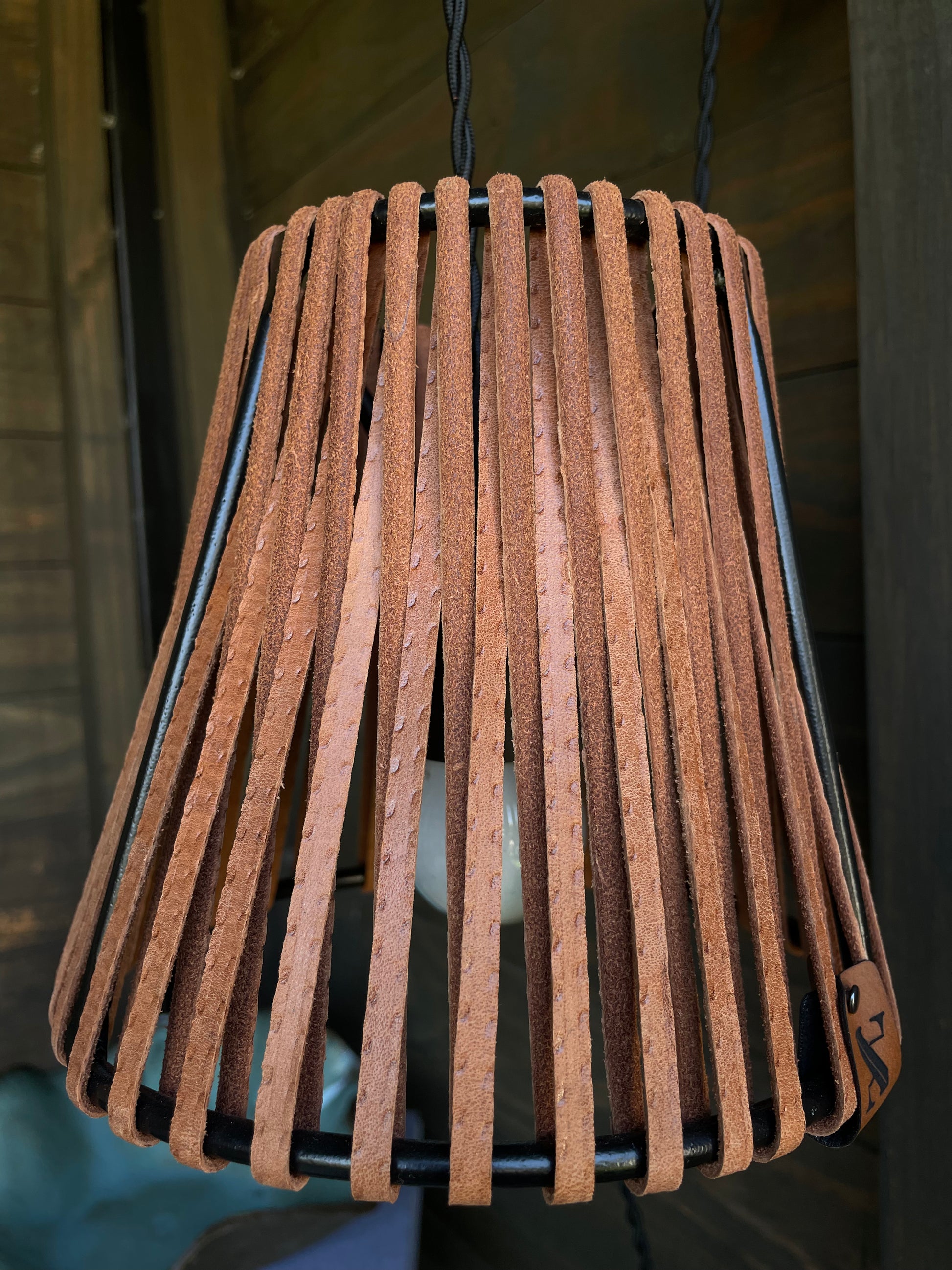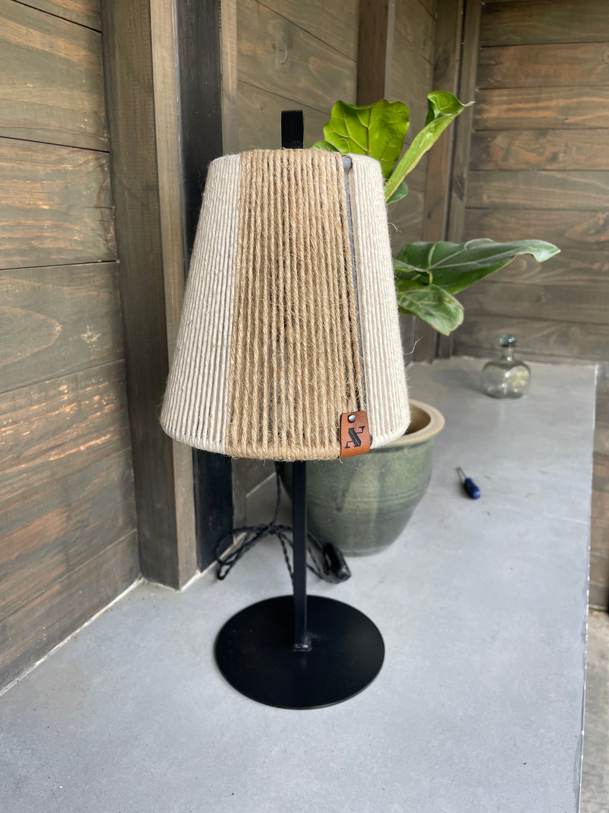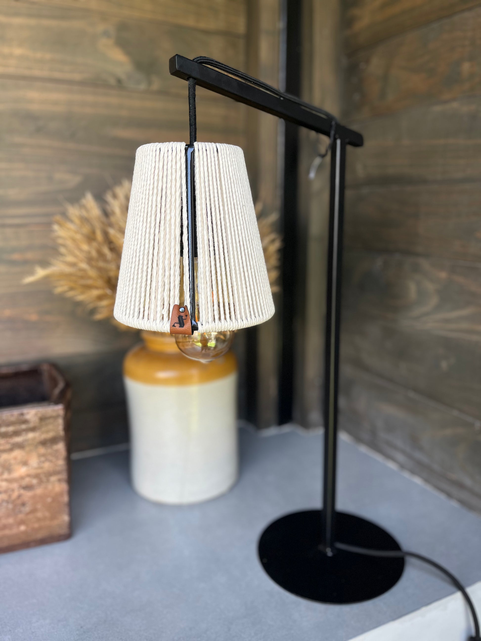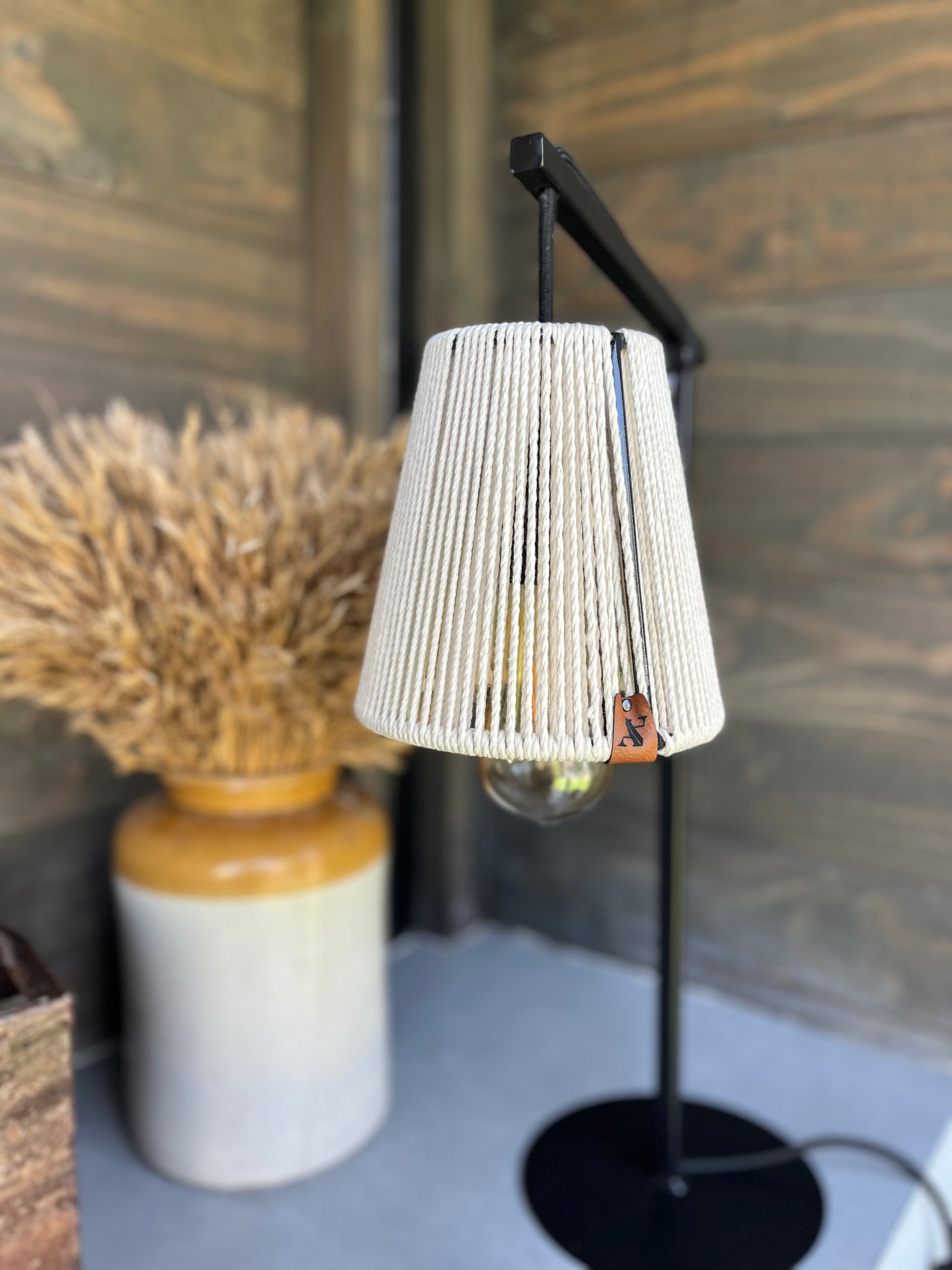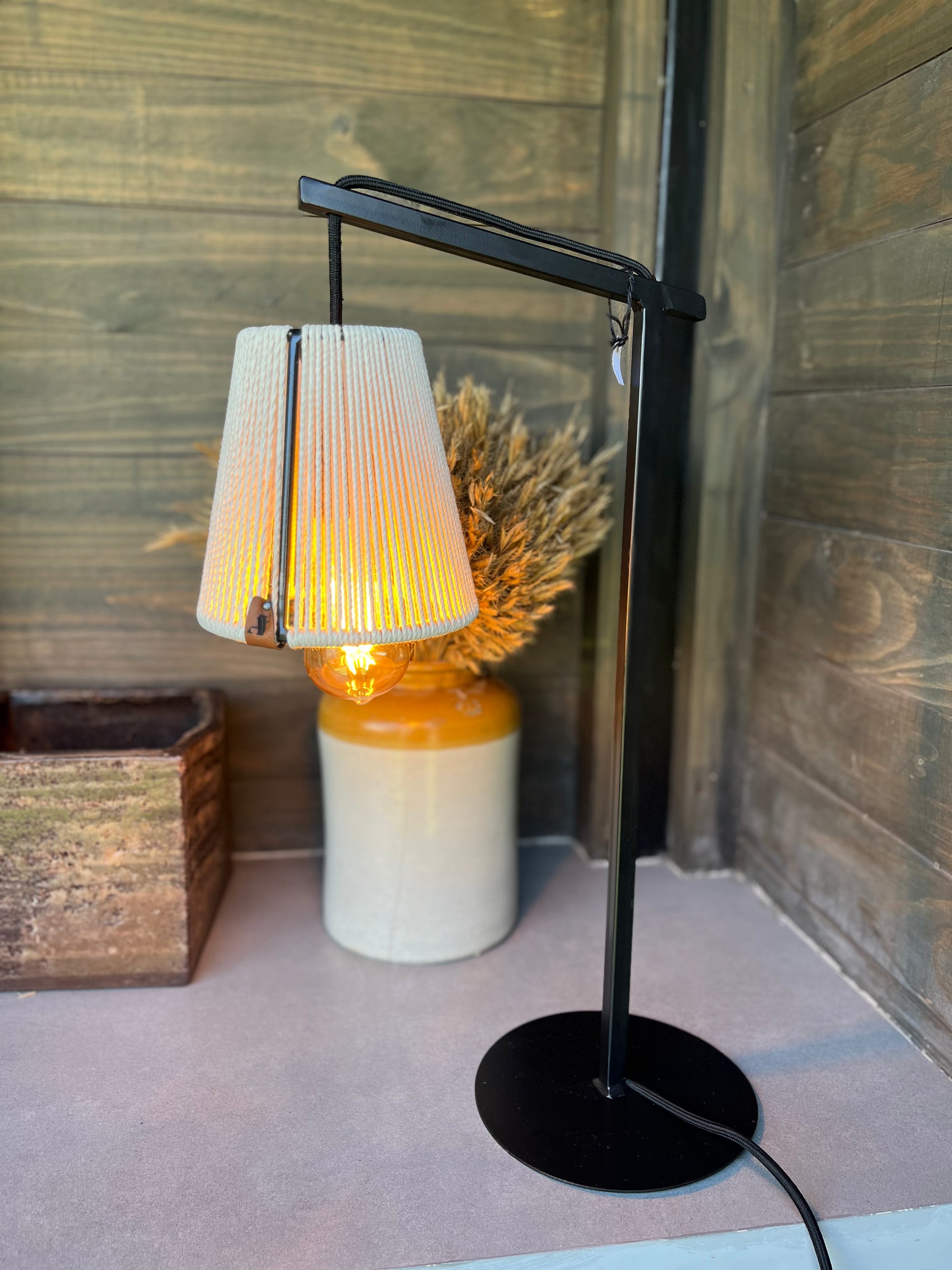 Estoy hecha a mano por mis diseñadoras, con un tejido natural llamado cuero. Dandole modernidad y atemporalidad. Con un pie de fierro pintado con pintura negra mate electroestática
