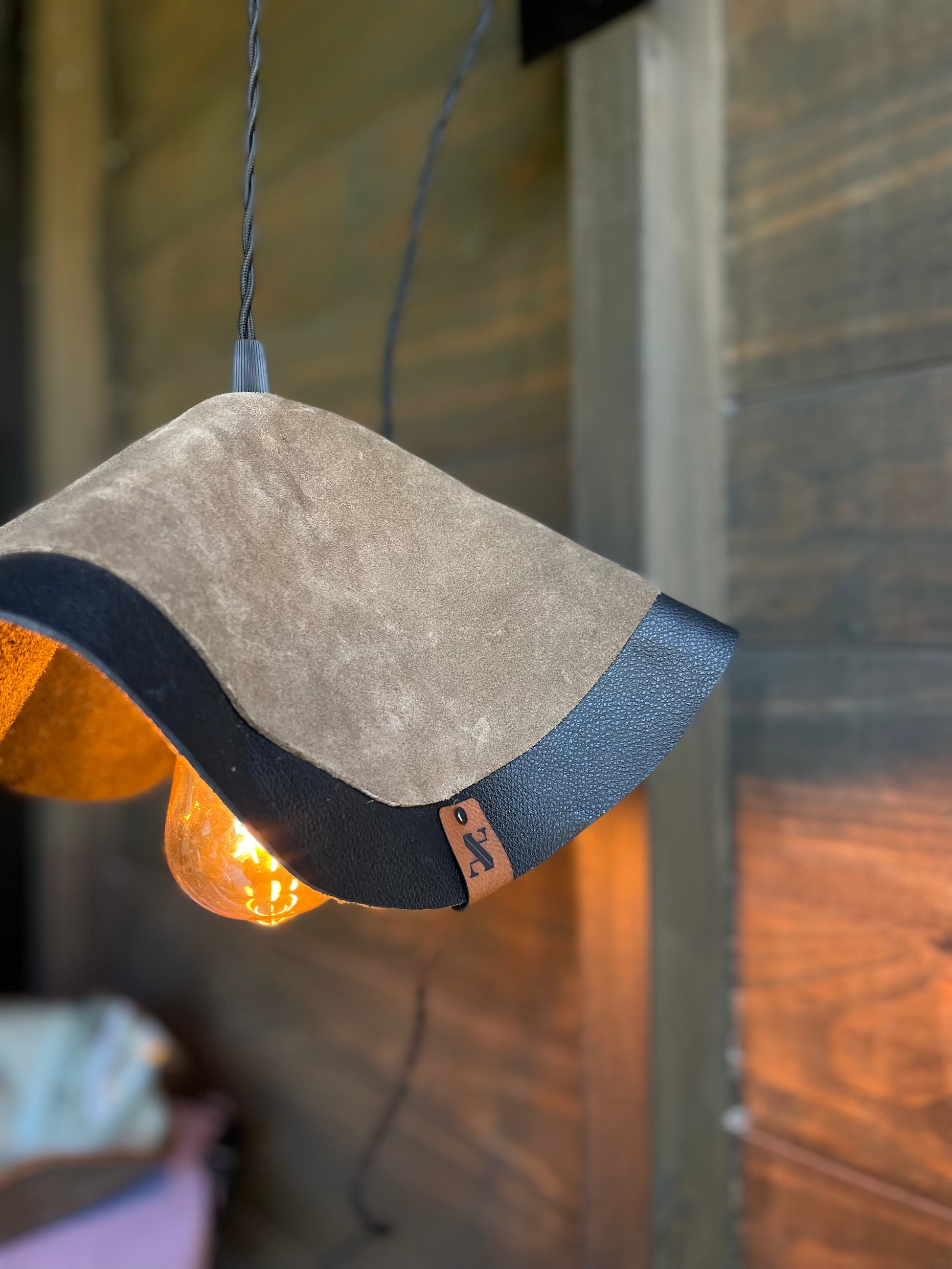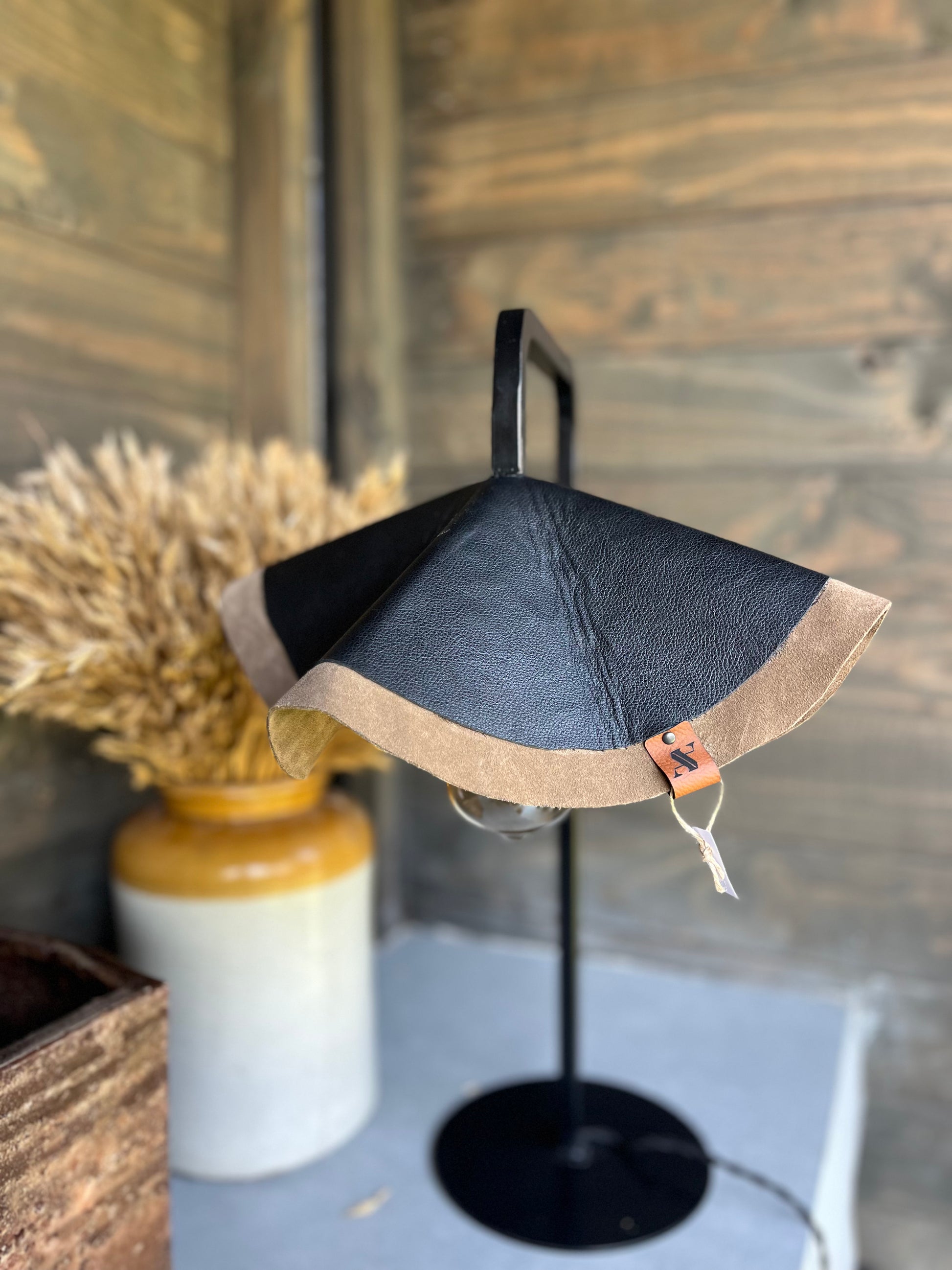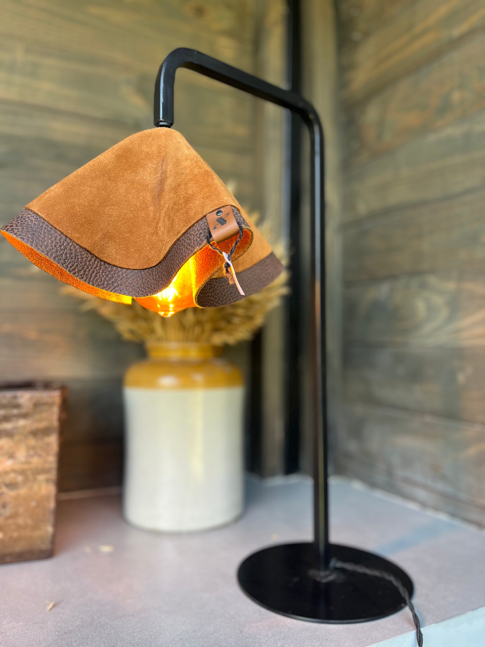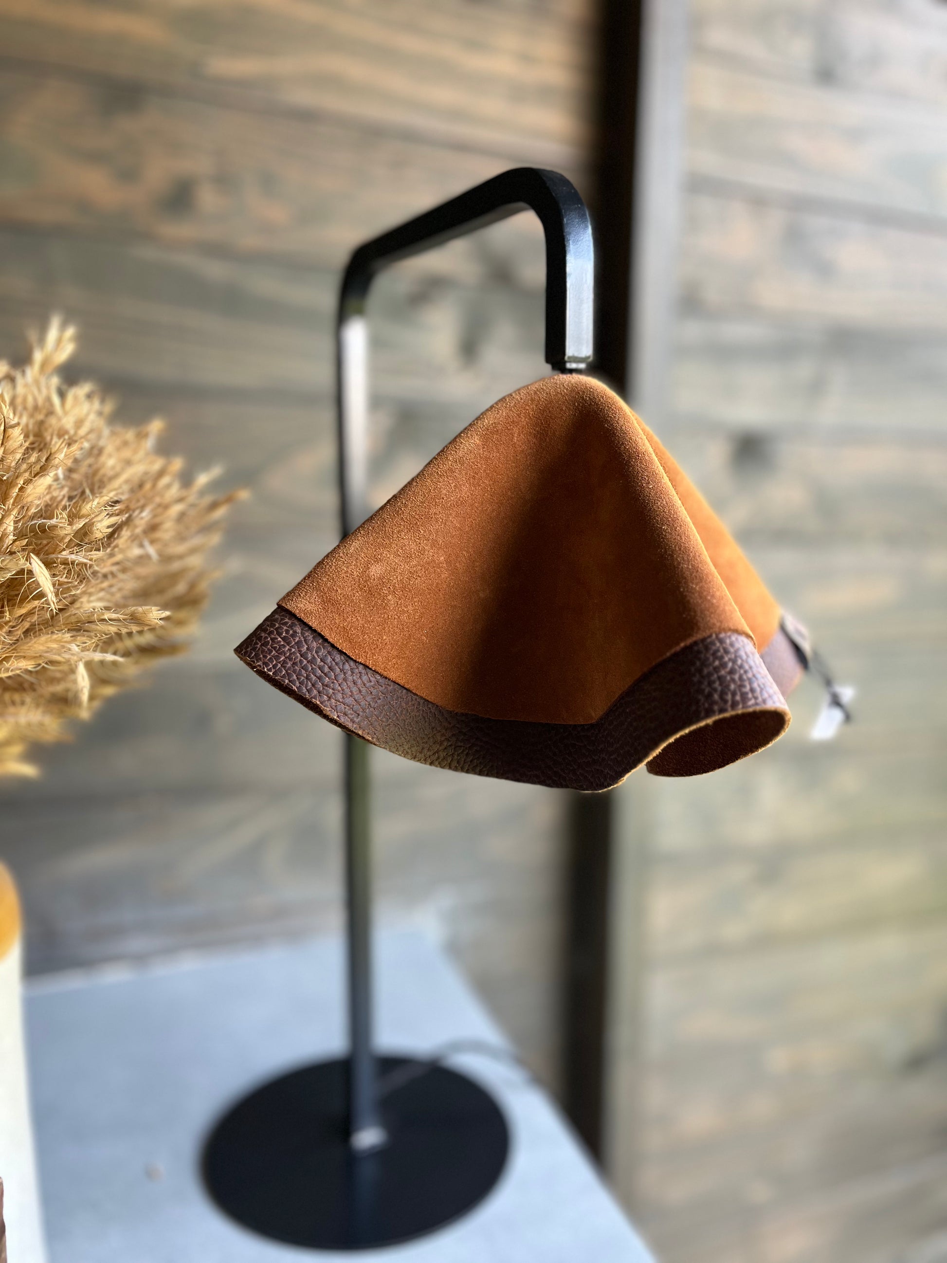 Estoy hecha a mano por mis diseñadoras, con un tejido natural llamado cuero. Dandole modernidad y atemporalidad. Con un pie de fierro pintado con pintura negra mate electroestática