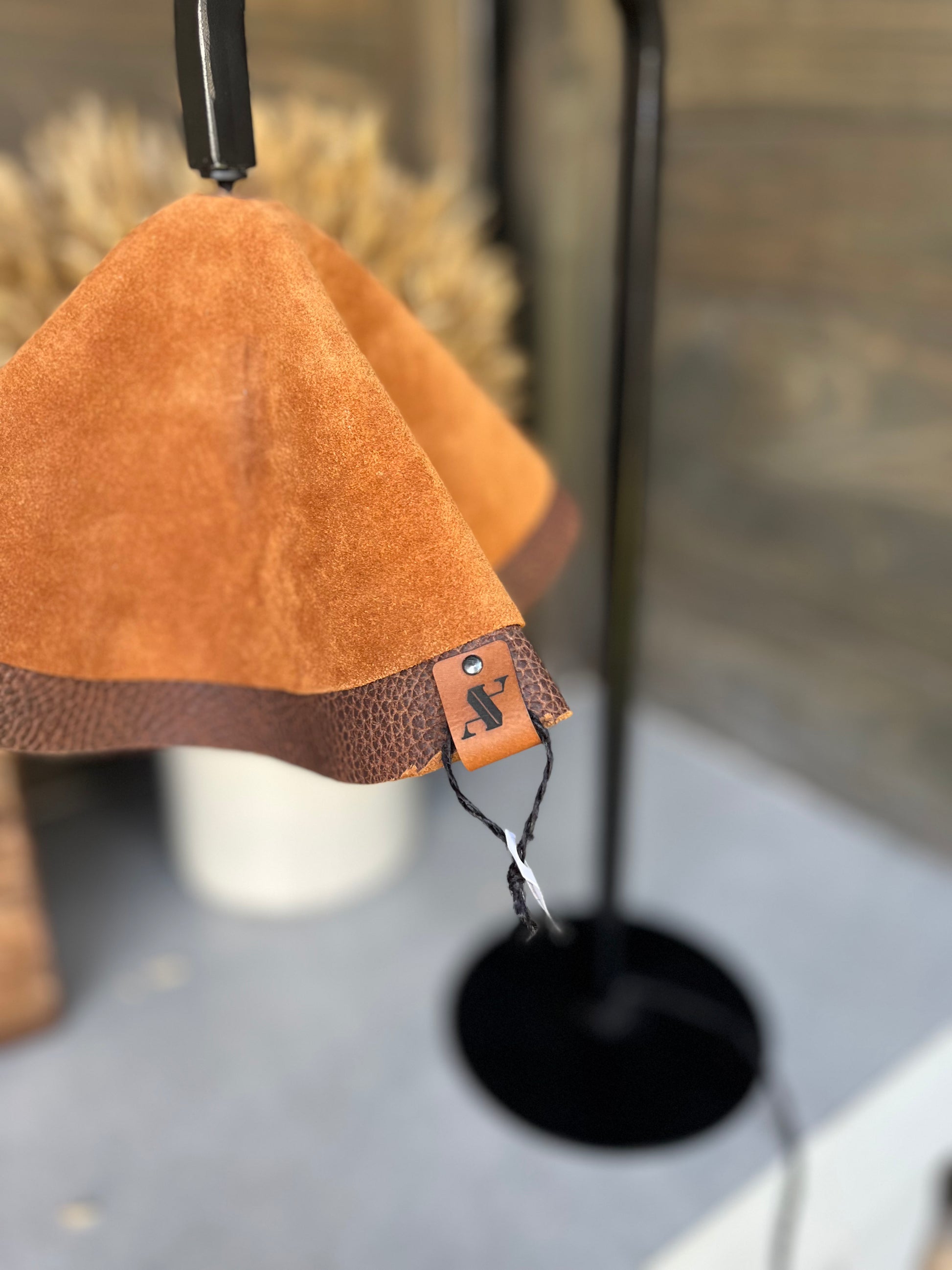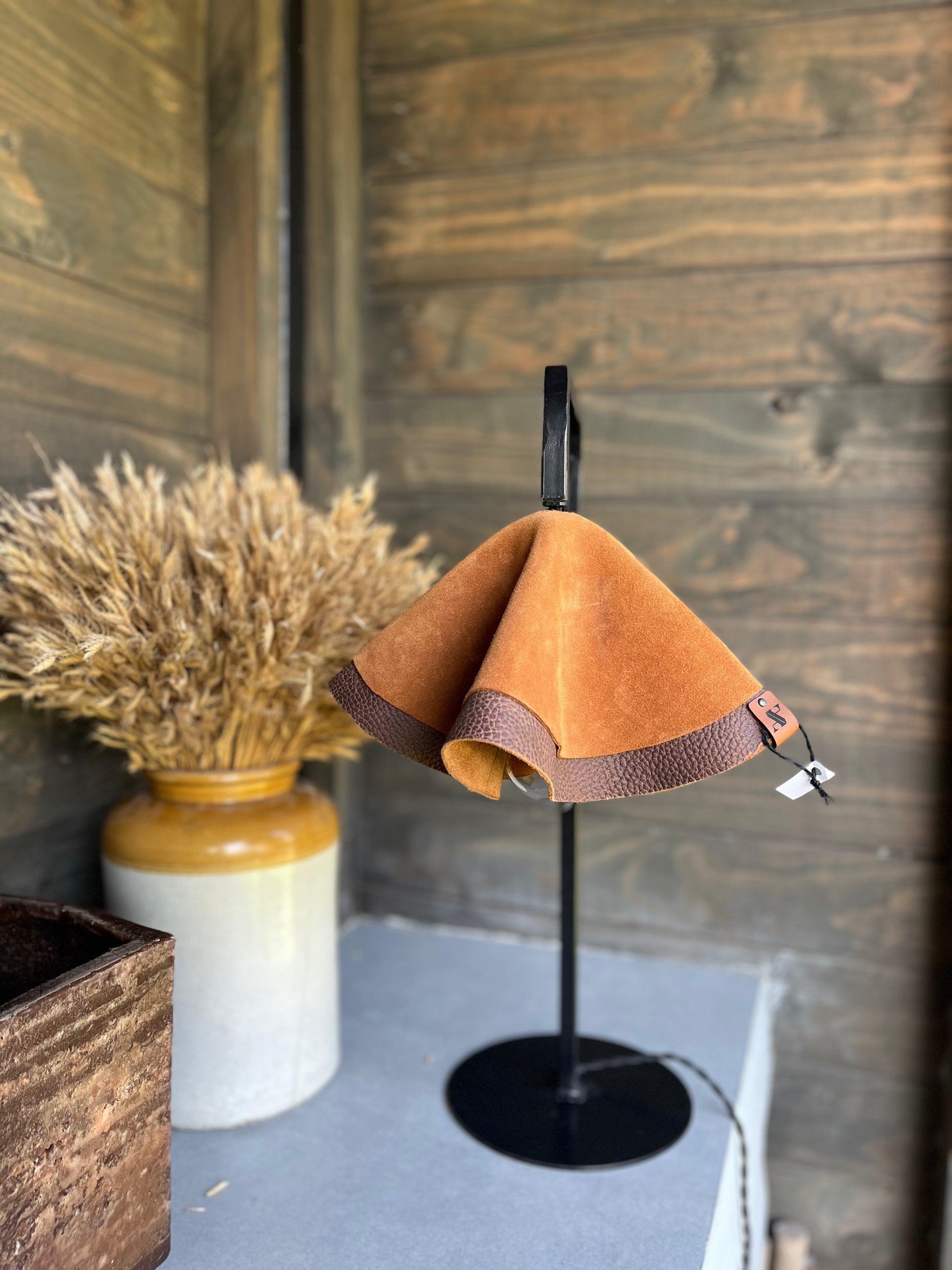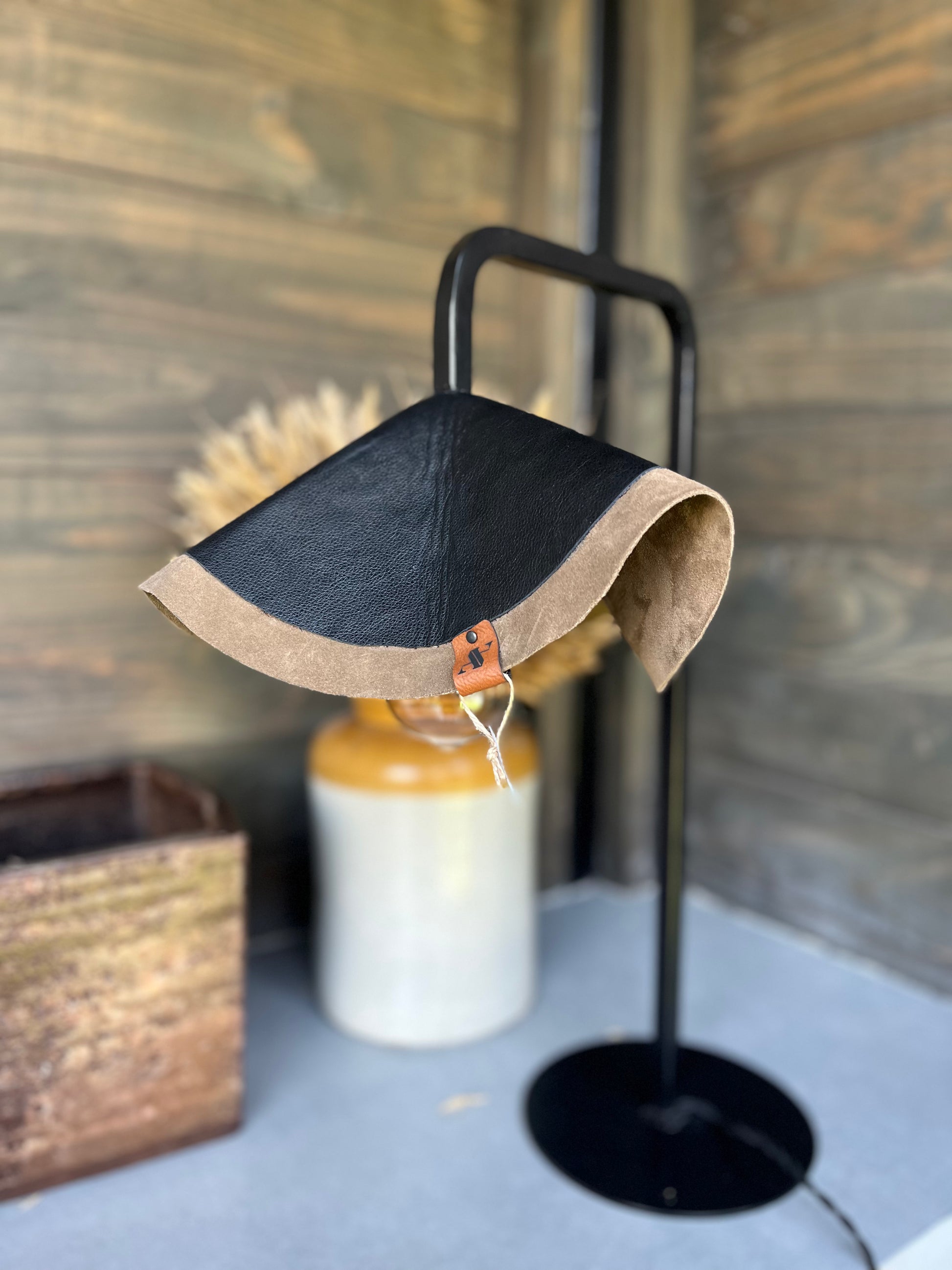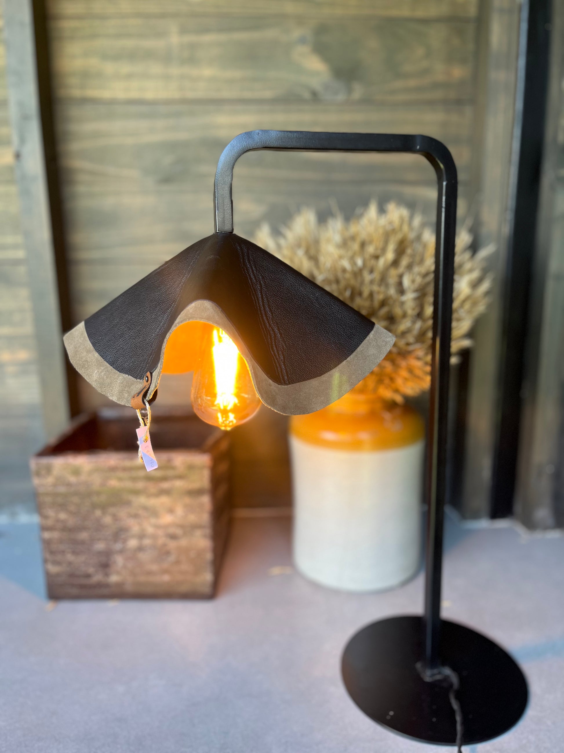 Estoy hecha a mano por mis diseñadoras, con un tejido natural llamado cuero. Dandole modernidad y atemporalidad. Con un pie de fierro pintado con pintura negra mate electroestática